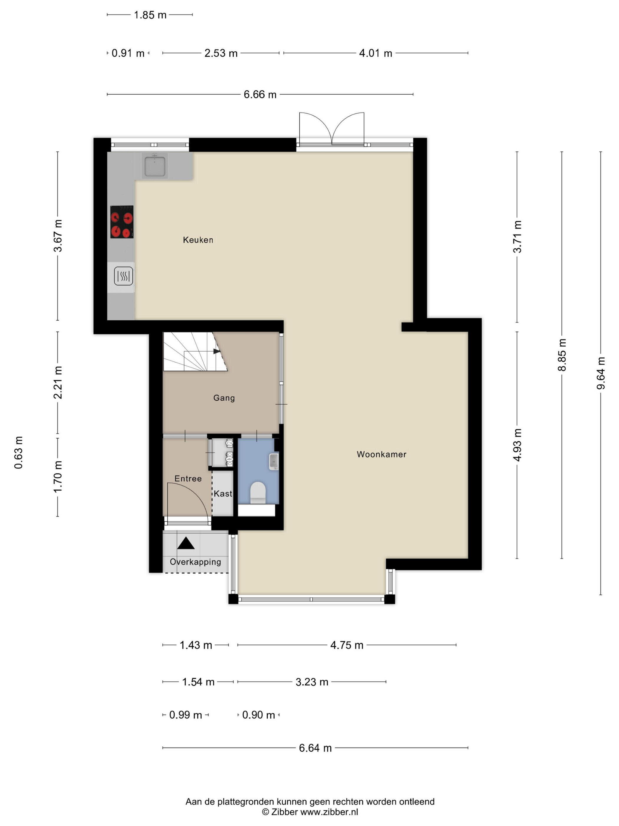 - 76 m² (11 meter diep en 6.9 meter breed)