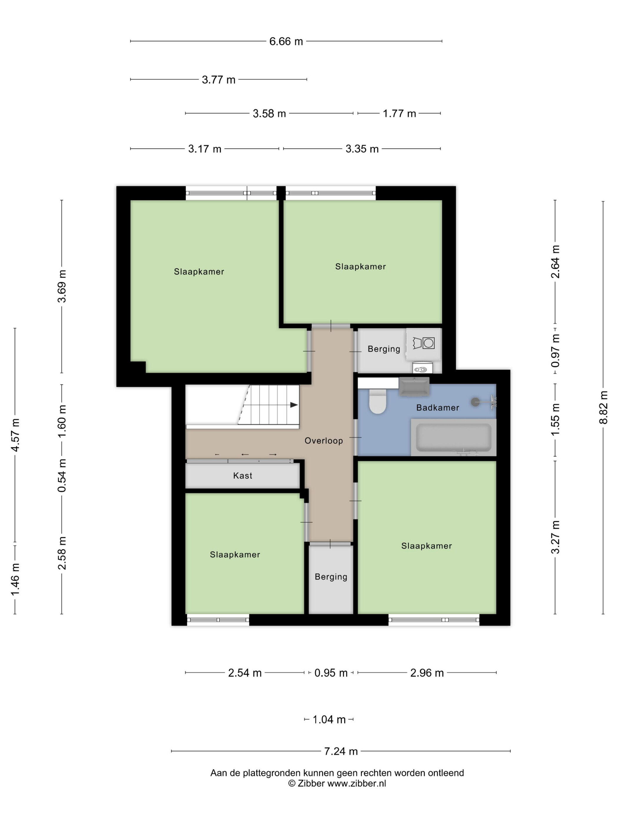 De slaapkamers meter respectievelijk 7, 9, 10 en 12 m². De badkamer is keurig, tijdloos afgewerkt en compleet uitgevoerd met een ligbad, inloopdouche, wastafel en toilet.